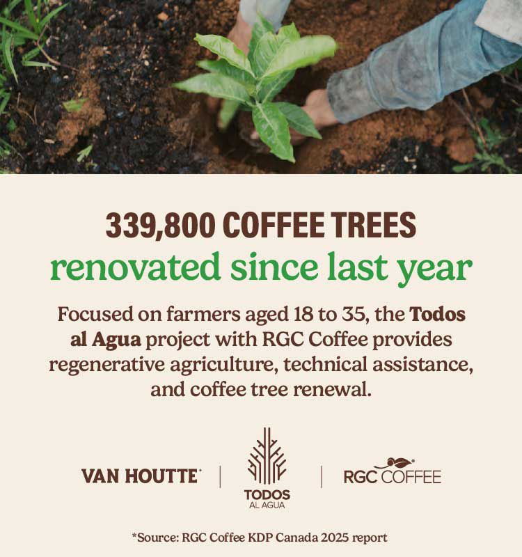 This April, for Earth Month, Van Houtte will donate $1 from every coffee product sold to the Todos al Agua project to further support young farmers*. Every purchase helps strengthen farming communities and support a more sustainable future for coffee.